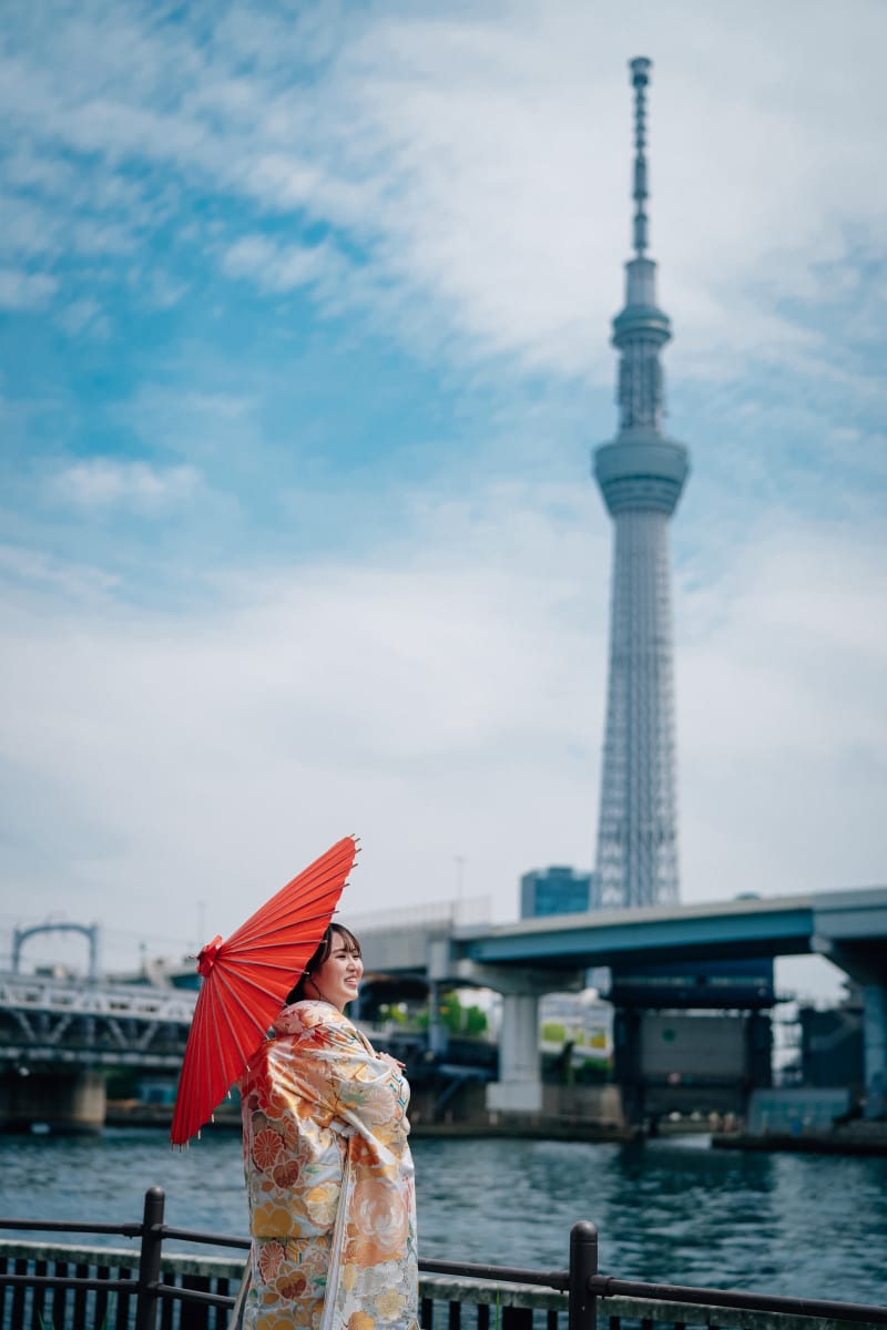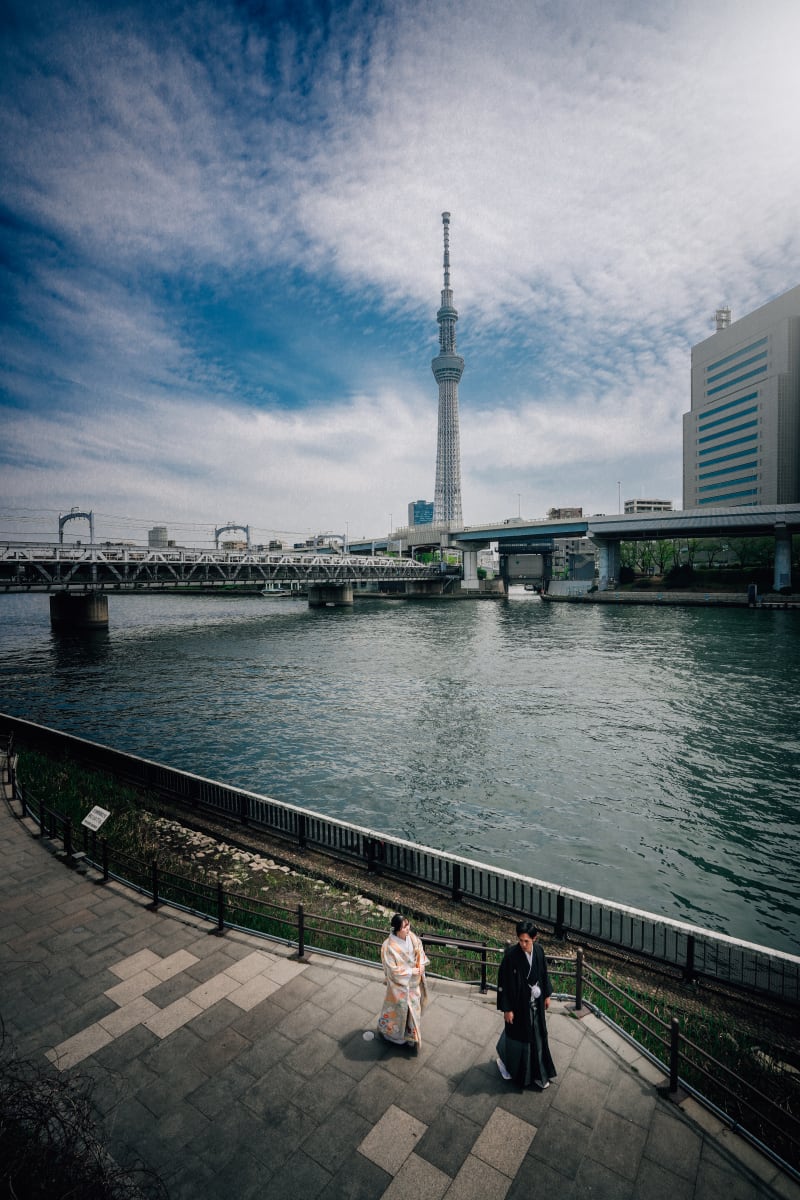 スカイツリーと新婦様、素敵です!