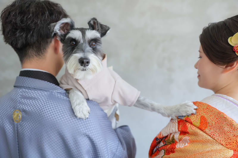 わんちゃんもお二人とお揃いの和装をご持参いただきました!!