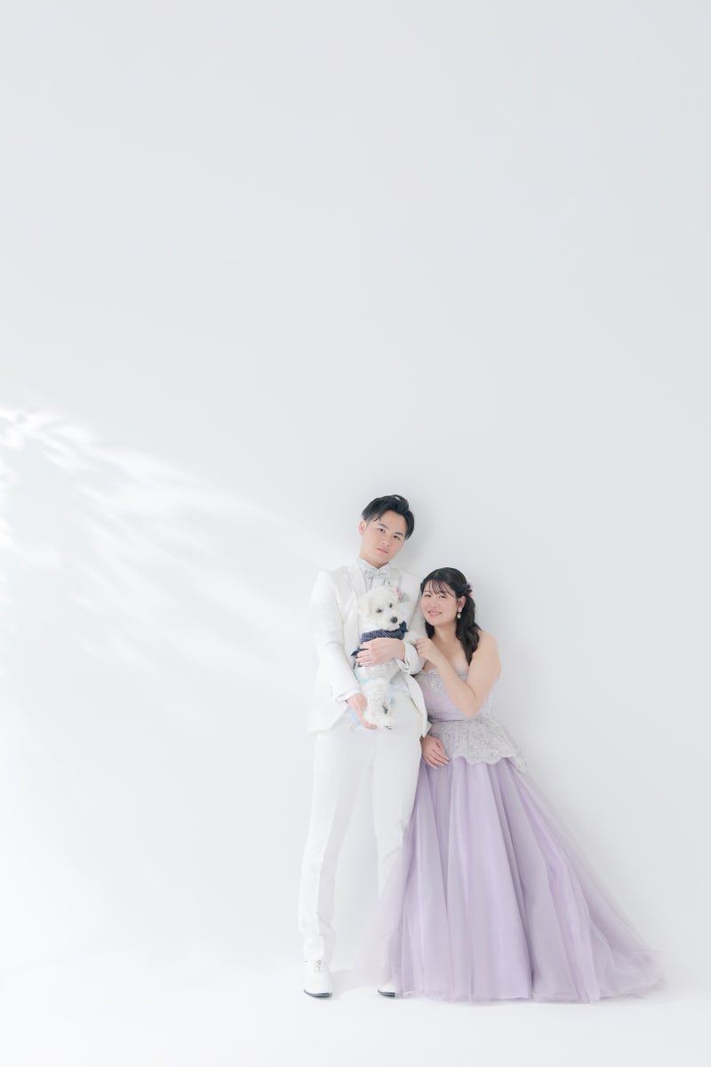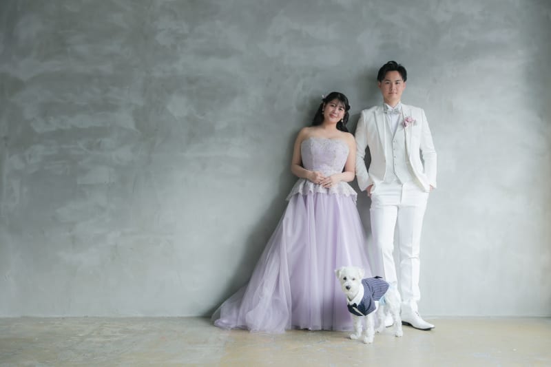 紫のカラードレスと白のタキシードがよくお似合いです♡