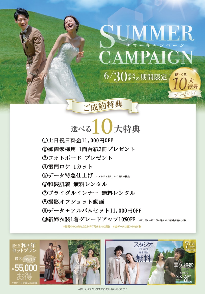 6月中に撮影日を決めていただけた方は、豪華10大特典の中からお好きな特典を一つお選びいただけます★