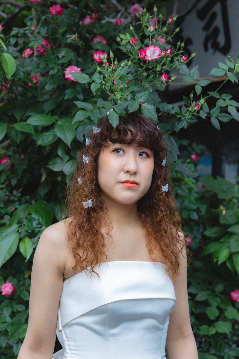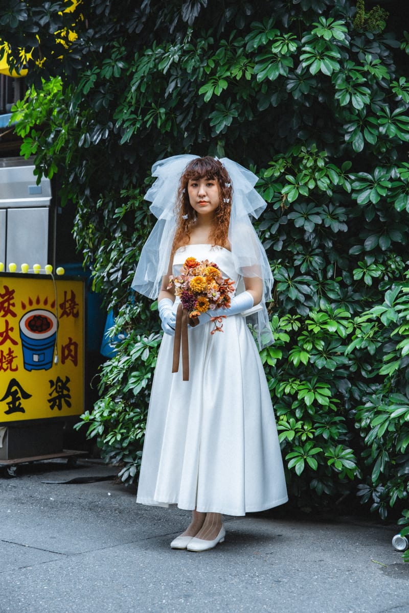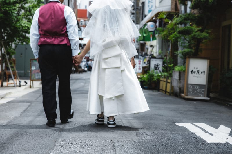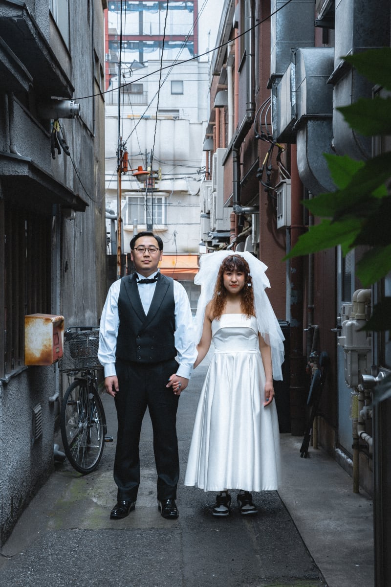 足元が見えるドレスでしたので、靴はパンプスとスニーカーの2パターンで撮影しました!