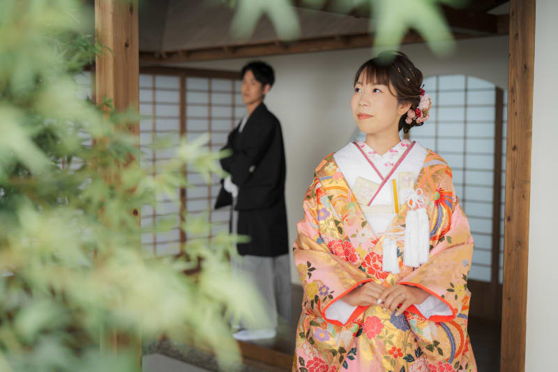 こんにちはスタジオAQUA浅草店です。本日は屋内庭園スタジオと雷門前ロケーション撮影のご紹介です。