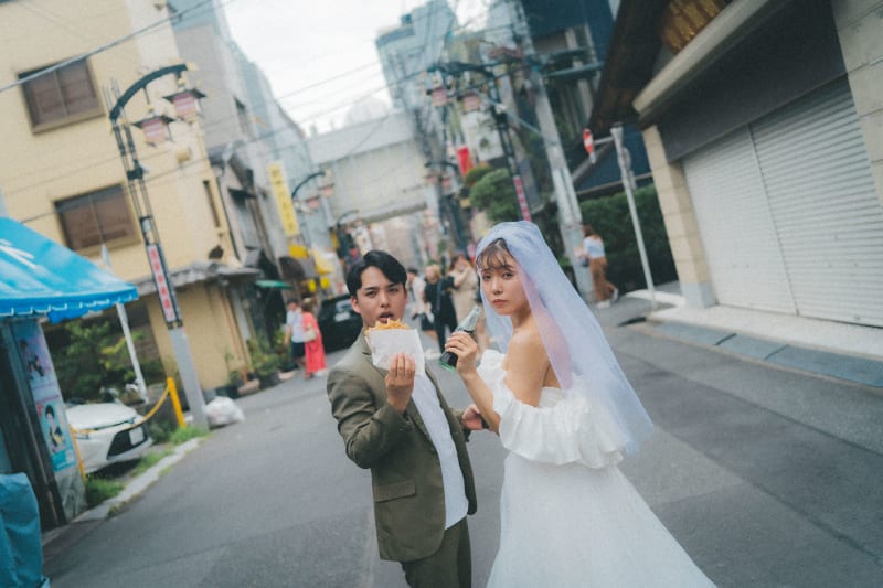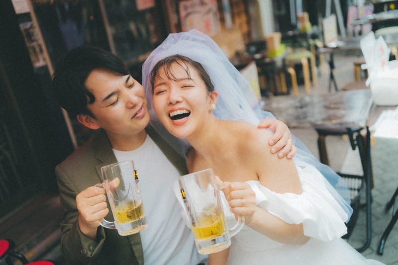 浅草周遊のプランでは、お酒を片手に撮影したり、