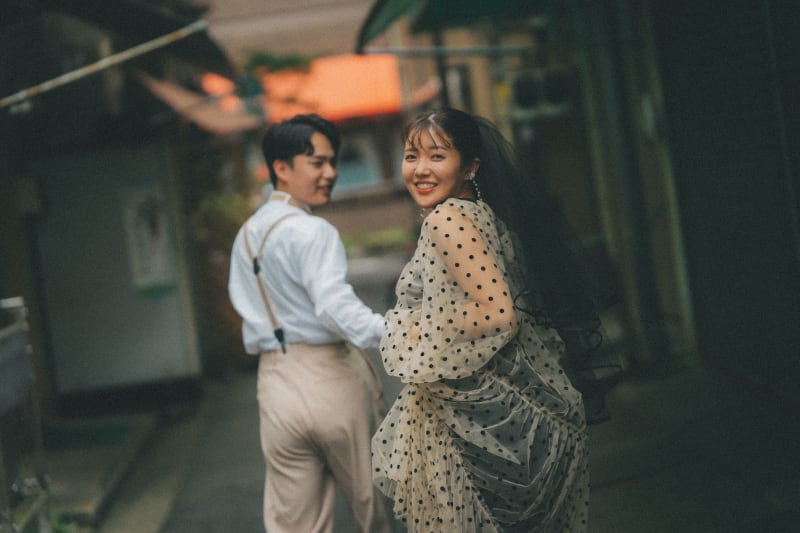 レトロな雰囲気とドレス、お二人の笑顔がとても似合います!