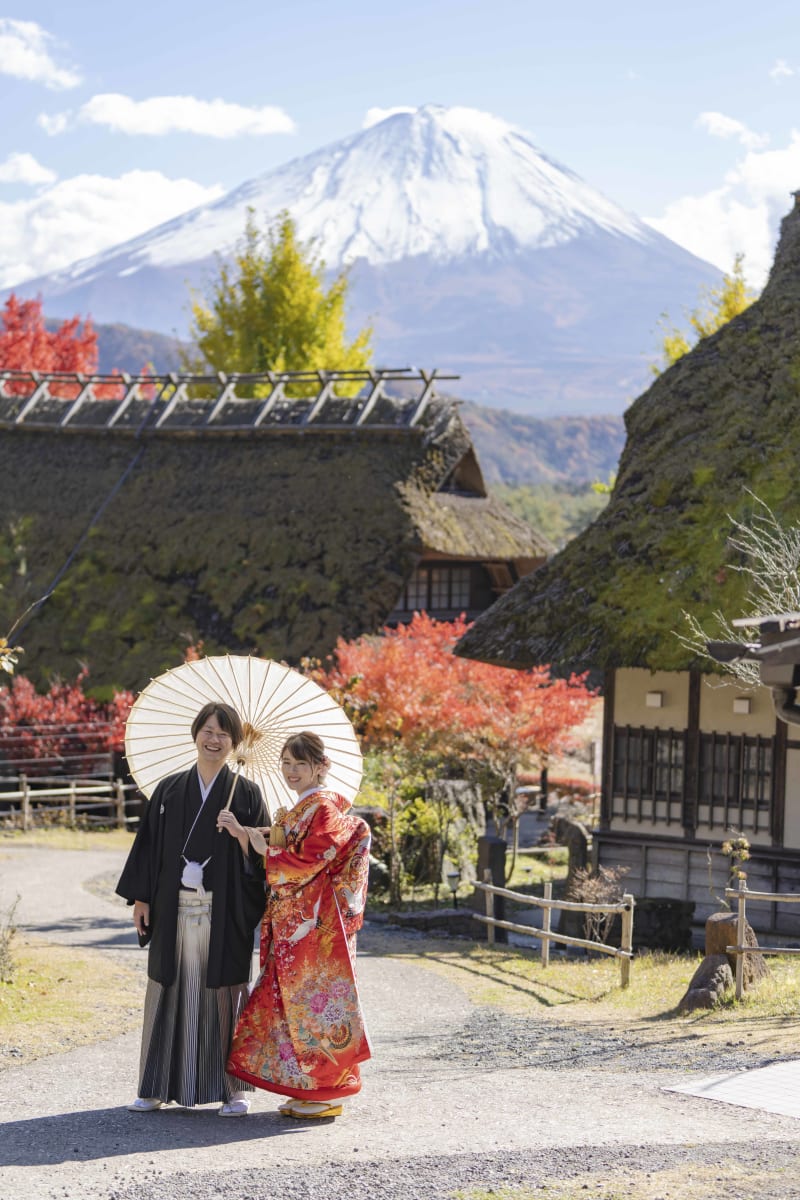 こちらはいやしの里での一枚。家屋と富士山が一望できます!