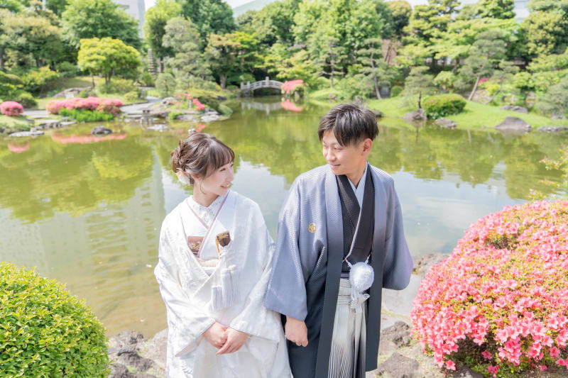 本格日本庭園を再現したスタジオで撮る 和装の結婚写真