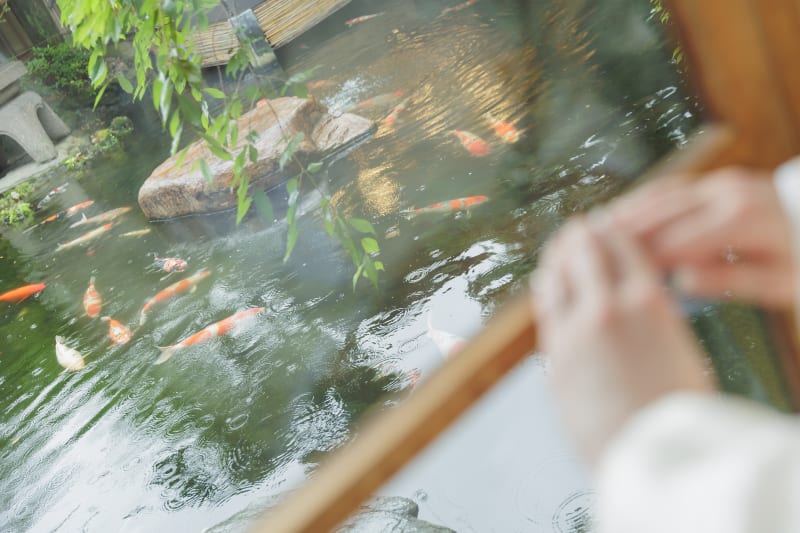 庭園の池には美しい鯉たちが泳ぎまわり、内観/外観からは日本の粋を感じることができます。