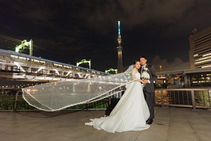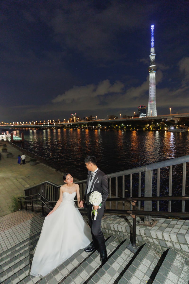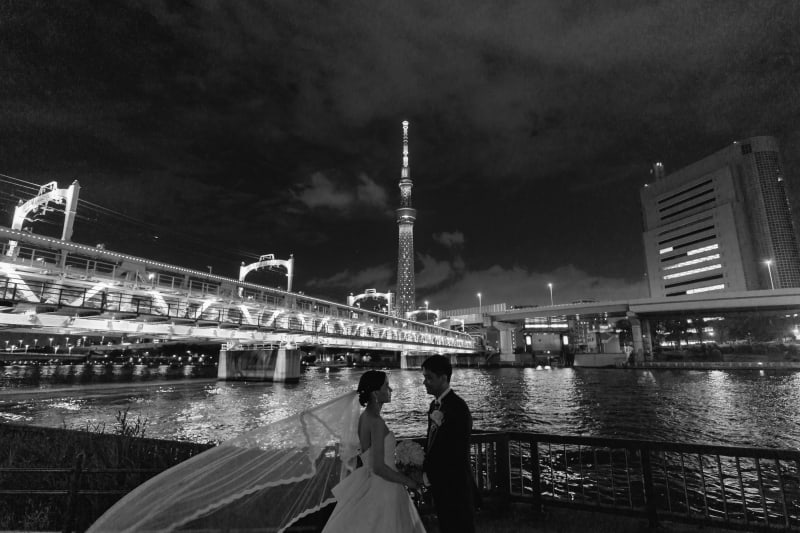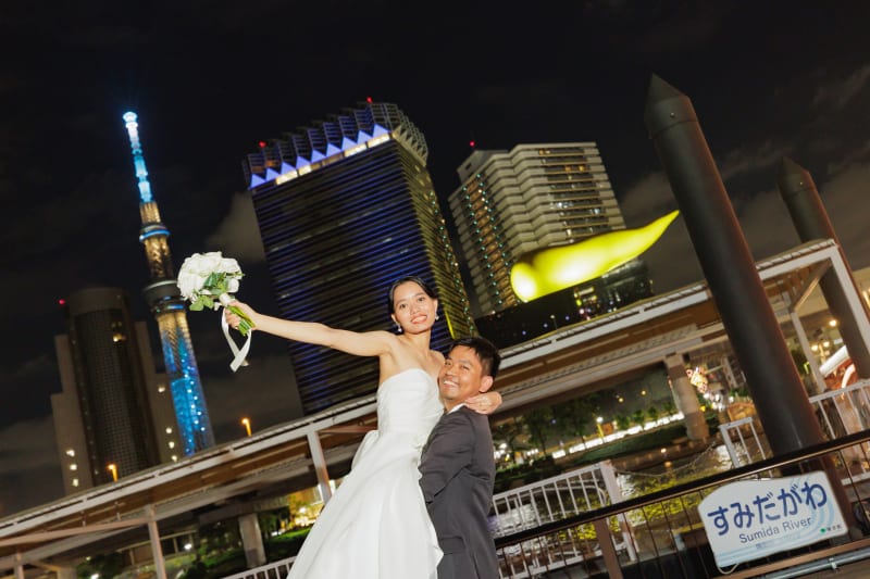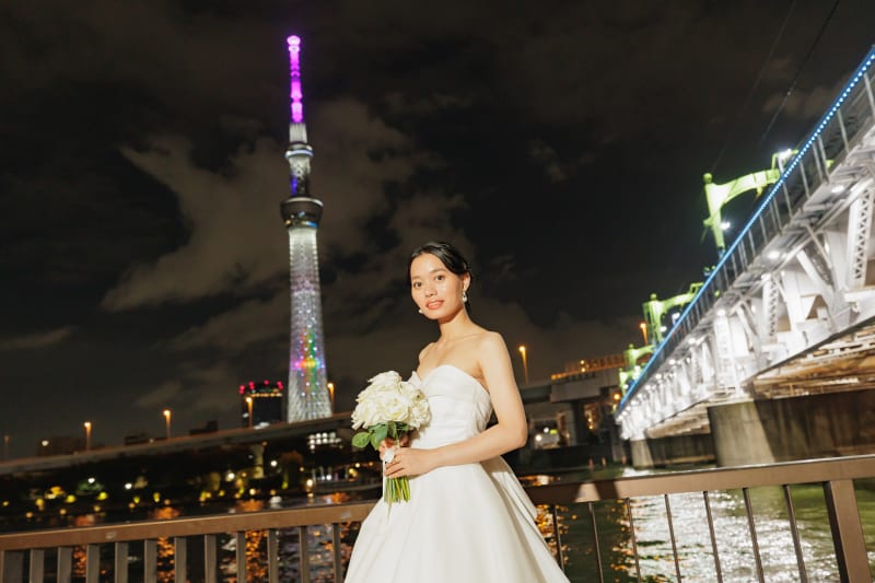 和装も洋装も、主に店舗近くの雷門や隅田川沿いで撮影させていただきました。