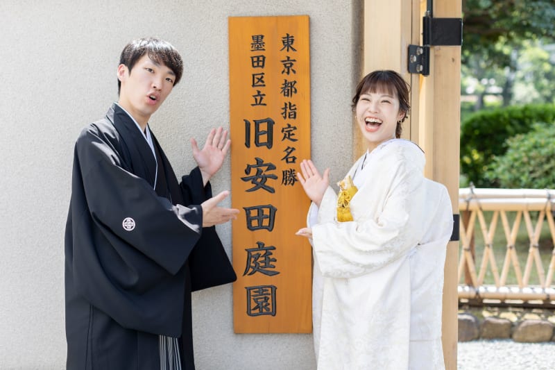 浅草店からもすぐ近くにある旧安田庭園で撮影をしました。