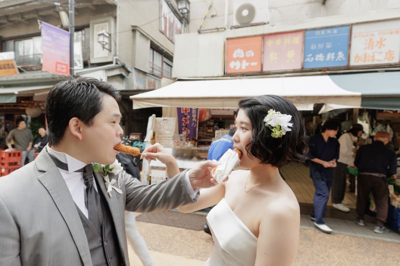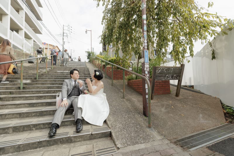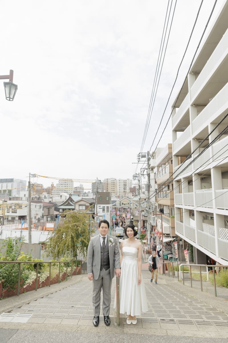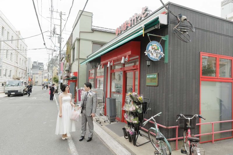 お付き合いをしていた頃に、ご新郎様が住んでいたエリアということで、せっかくならお二人にゆかりのある場所で撮影したい!とご相談いただいたことがきっかけで、今回のオリジナルプランでのご案内をさせていただきました。