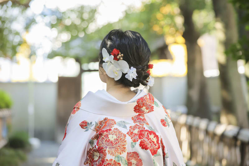 和装ではルーズに引き出したシニヨンスタイルで綺麗さと可愛らしさもあるヘアスタイル!