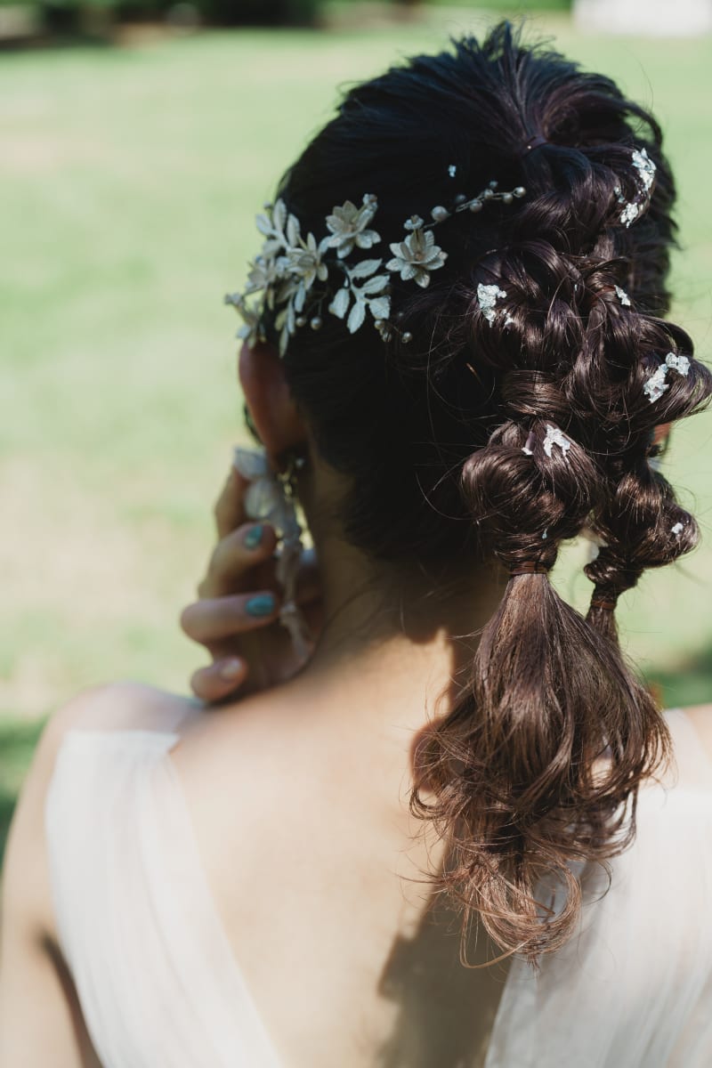 二つにすることでよりおしゃれ感がアップします!また、飾りもシルバーアクセと後ろからでも可愛くみえるように銀箔をつけました。