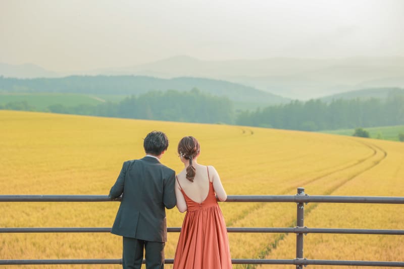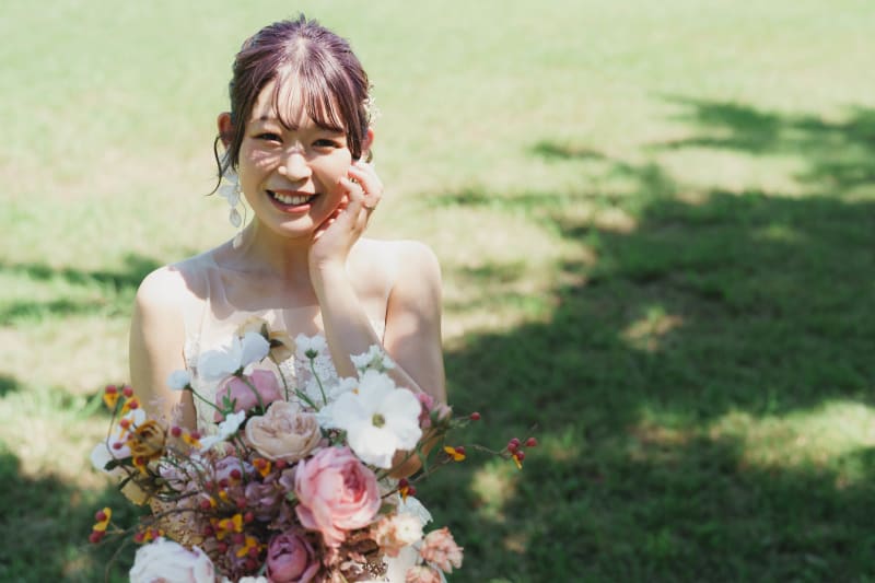 ウェディングといえば黒髪のイメージをもたれることが多いですが、カラーのヘアも可愛いです!
