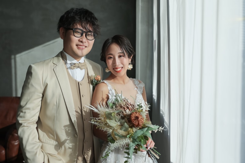 本日は洋装のハウススタジオで撮影してくださったお二人の写真をご紹介いたします!