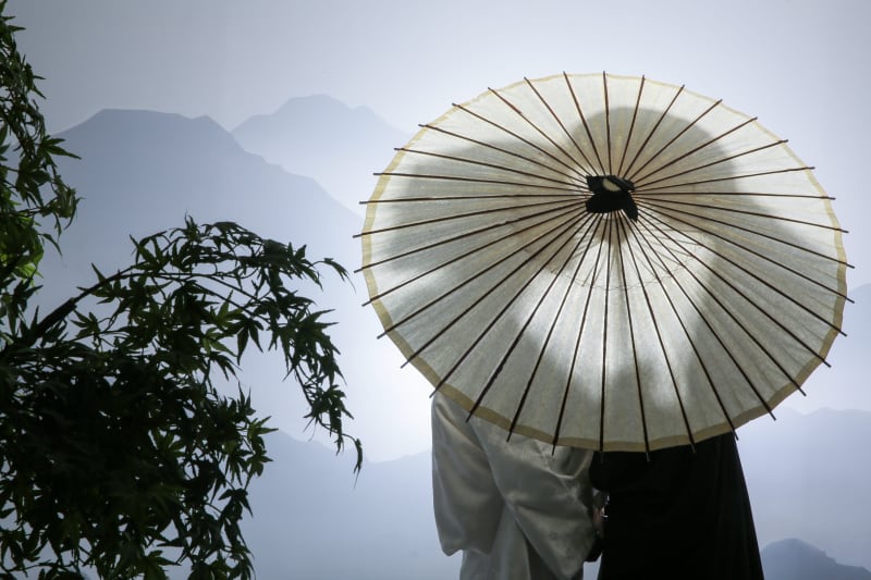 お二人の影!ライトを後ろに設置し、違う雰囲気のお写真も撮影させていただきました!お二人の影が傘に映っていますね!素敵!