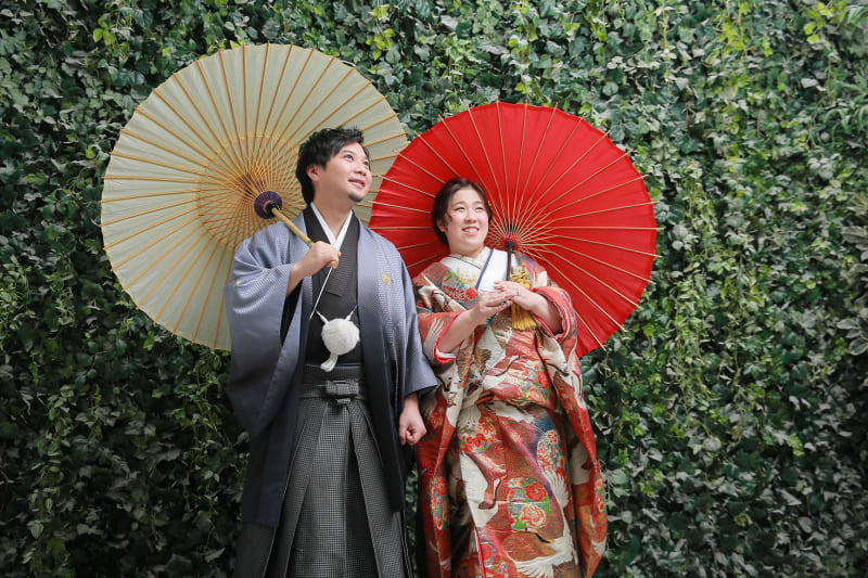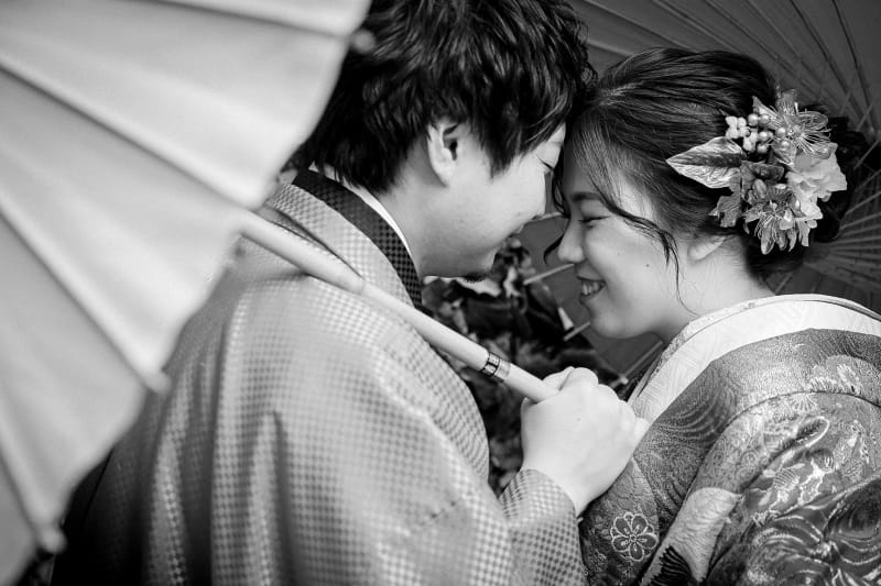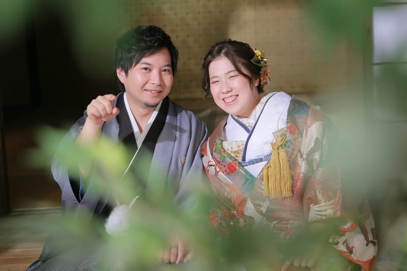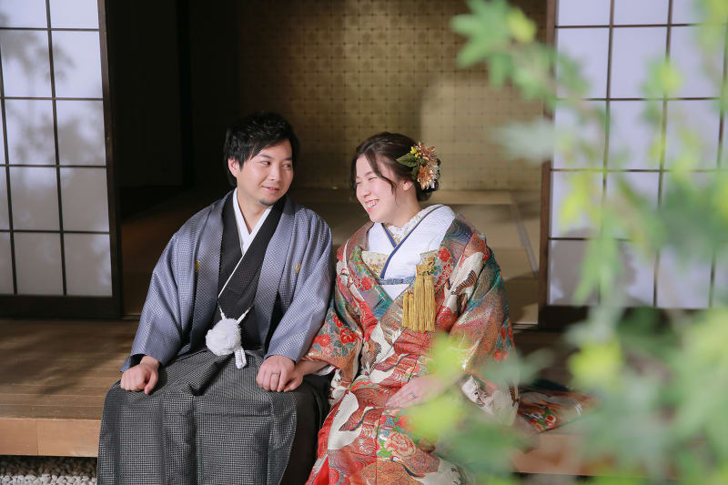 本格日本庭園を再現したスタジオで撮る 和装の結婚写真