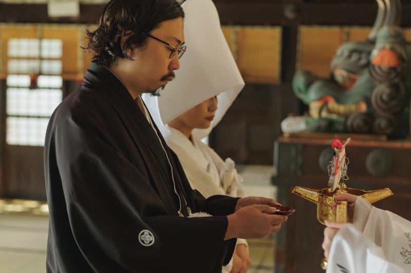 牛嶋神社の撮影では、神前式の流れを実際に行っていただき撮影いたします!