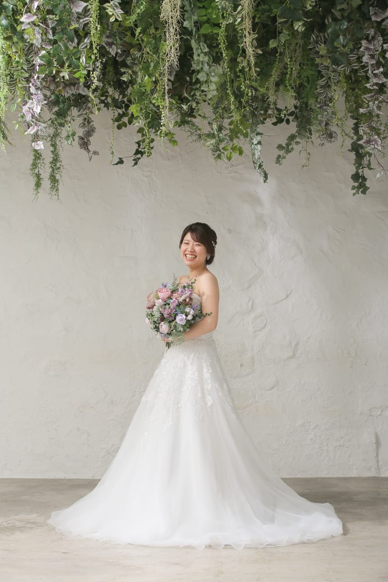 笑顔が本当に素敵なご新婦様でした。カメラが苦手な方も自然な表情を引き出すのでご安心ください!