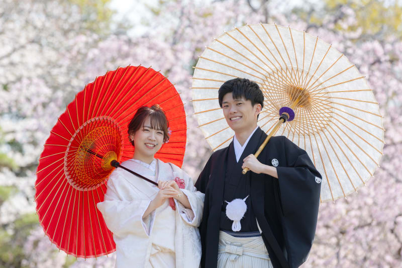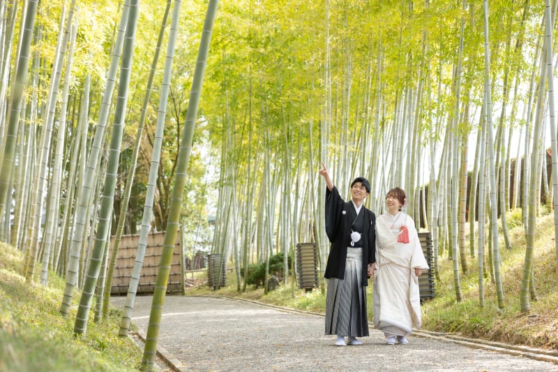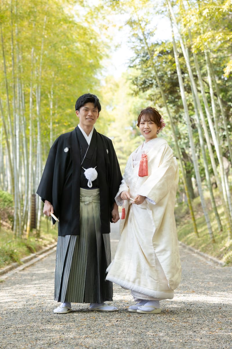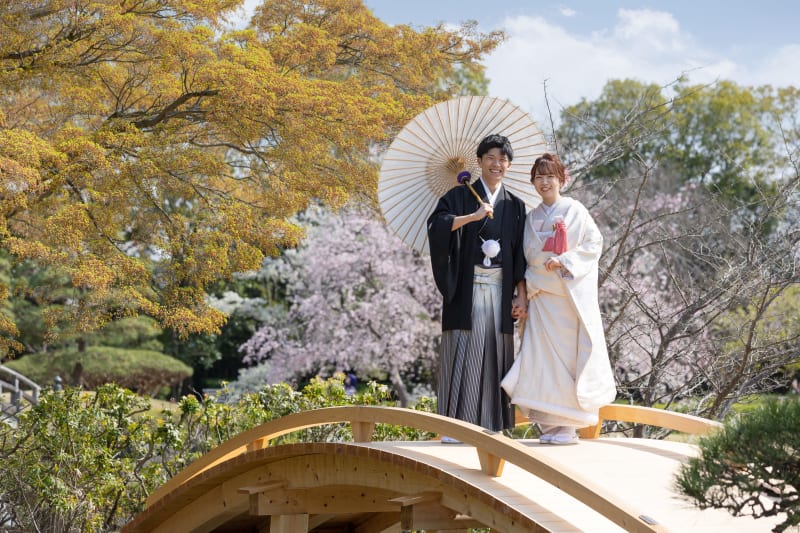 本格日本庭園を再現したスタジオで撮る 和装の結婚写真