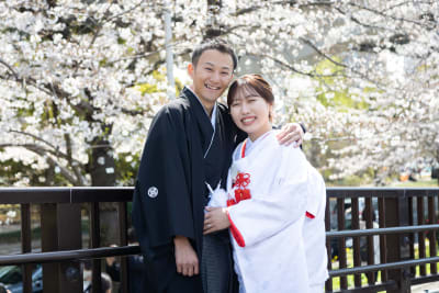 本格日本庭園を再現したスタジオで撮る 和装の結婚写真