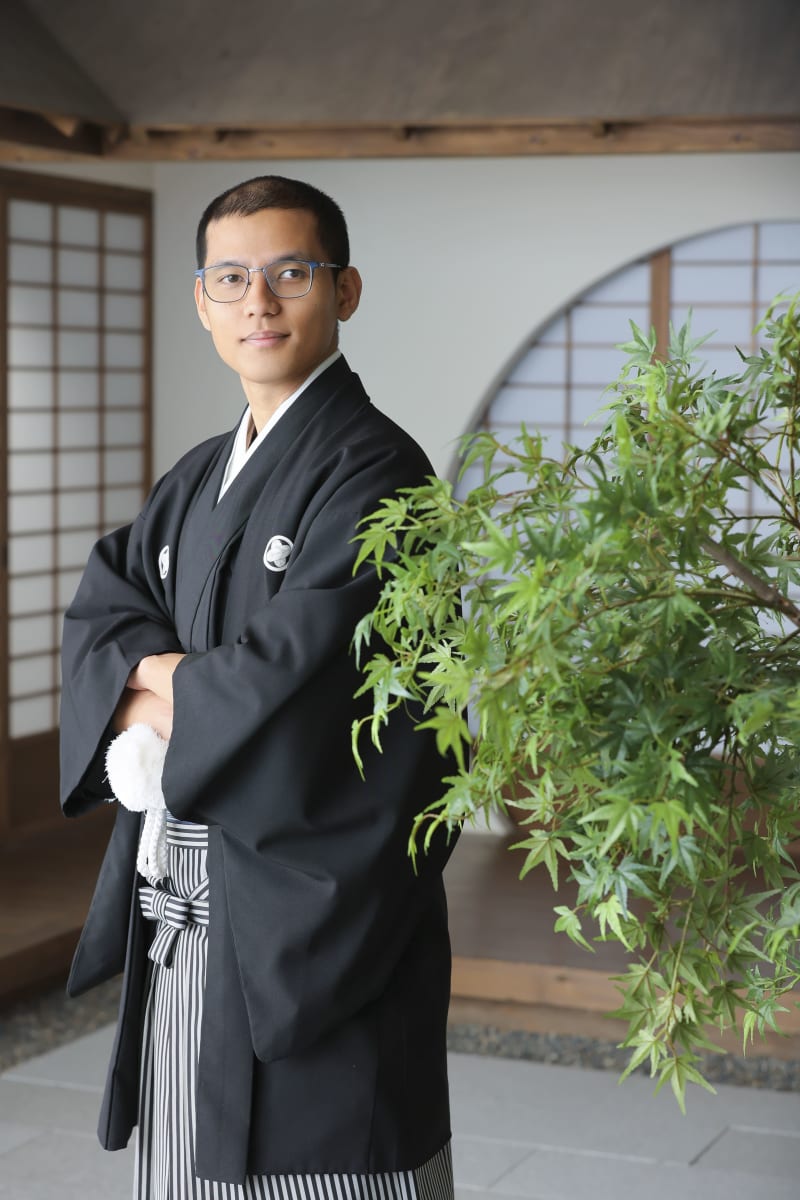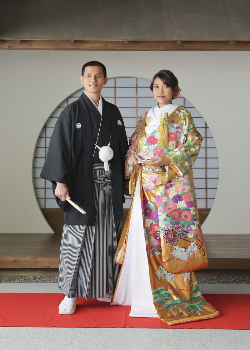 最初は伝統的な立ち姿からスタートです。お二人とも和装お似合いですね。素敵!