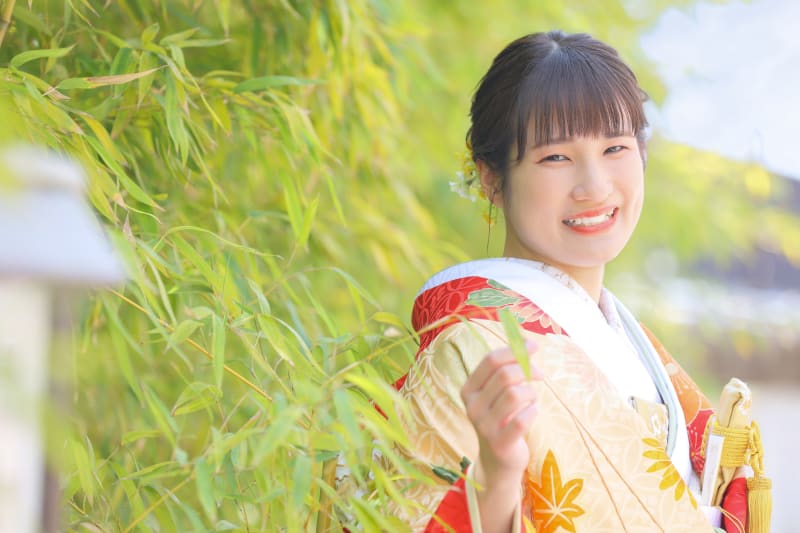 本格日本庭園を再現したスタジオで撮る 和装の結婚写真