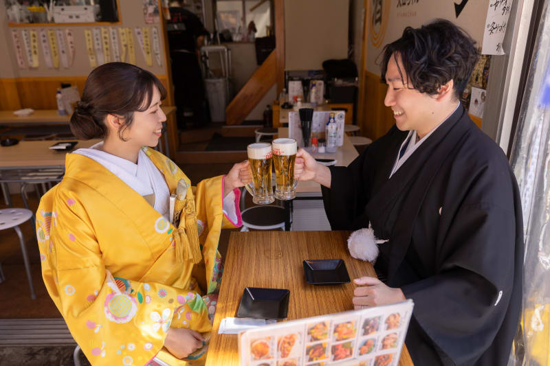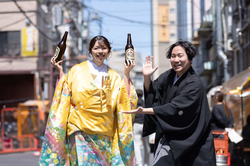 こんにちは!スタジオAQUA浅草店のインでございます。本日は浅草名所巡りロケーションプランを撮影されたお二人のご紹介です。定番の雷門の前からスタートです。その後に、スカイツリーに移動し、桜開花時期でしたので、桜とのお写真ももちろん撮影いたしました。最後には、お酒好きなお二人だけのホッピー通りショットも撮らせていただきました。