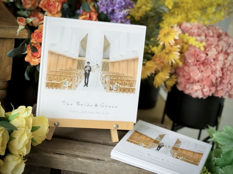 表紙全面にお写真が入る為、「飾れるアルバム」として、ウェルカムボードに使用するご新郎新婦様も多くいらっしゃいます。