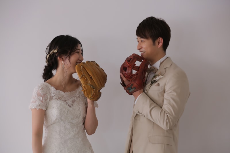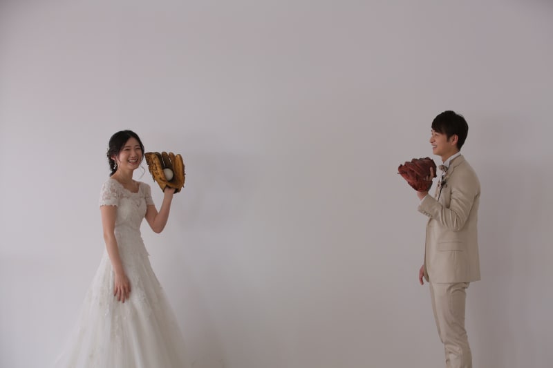 チャペルスタジオ×白ドレス&ベージュタキシード