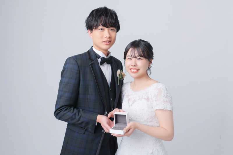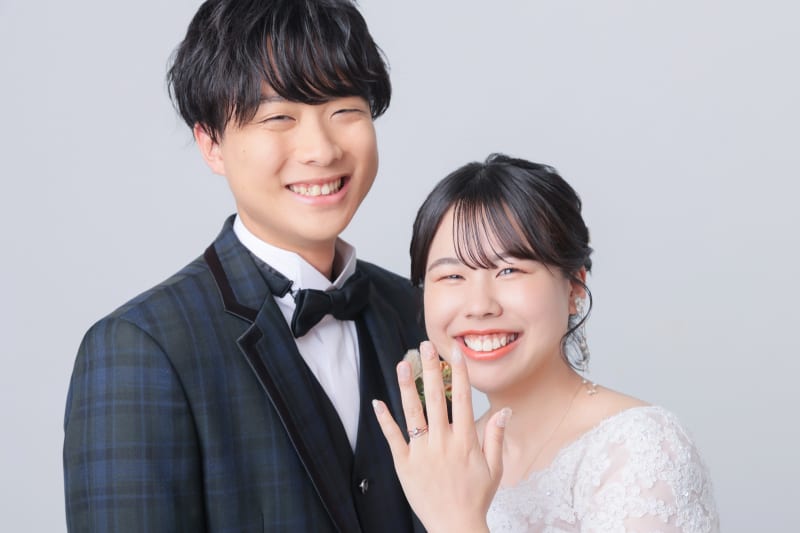本日は洋装スタジオPLUSで撮影されたとっても可愛いお二人のご紹介です。美男美女で、最初はモデルかと思いました。笑顔が何より可愛くて輝いていて印象的でした。ご新婦様の魅力的な笑顔で癒されました。ご新郎様がクールでしたが、ご新婦様と見つめ合うたびにと爽やかな笑顔になっていました。