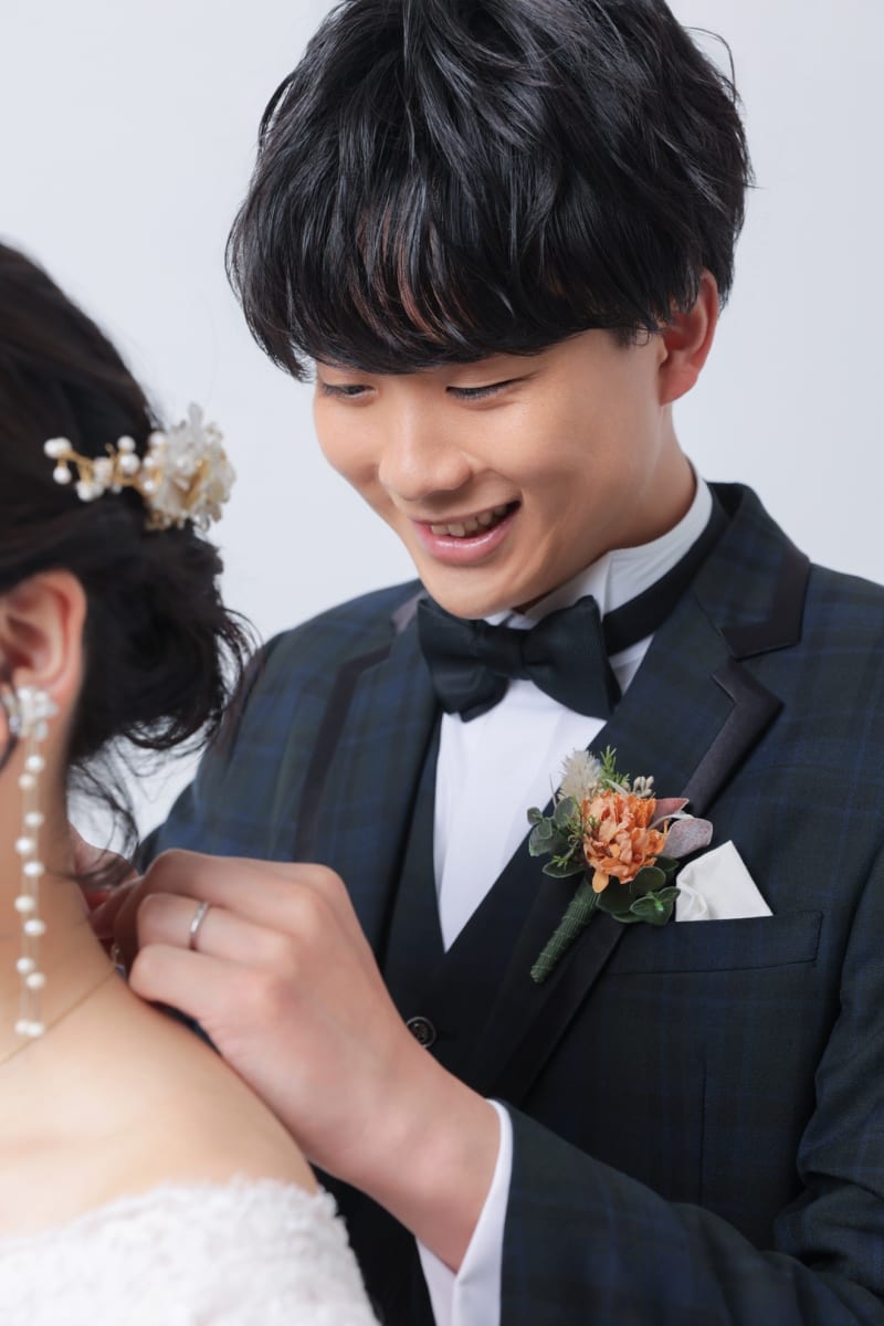 実際に着用している姿も撮影させていただきました。素敵ですね☺︎末長くお幸せになさってください。