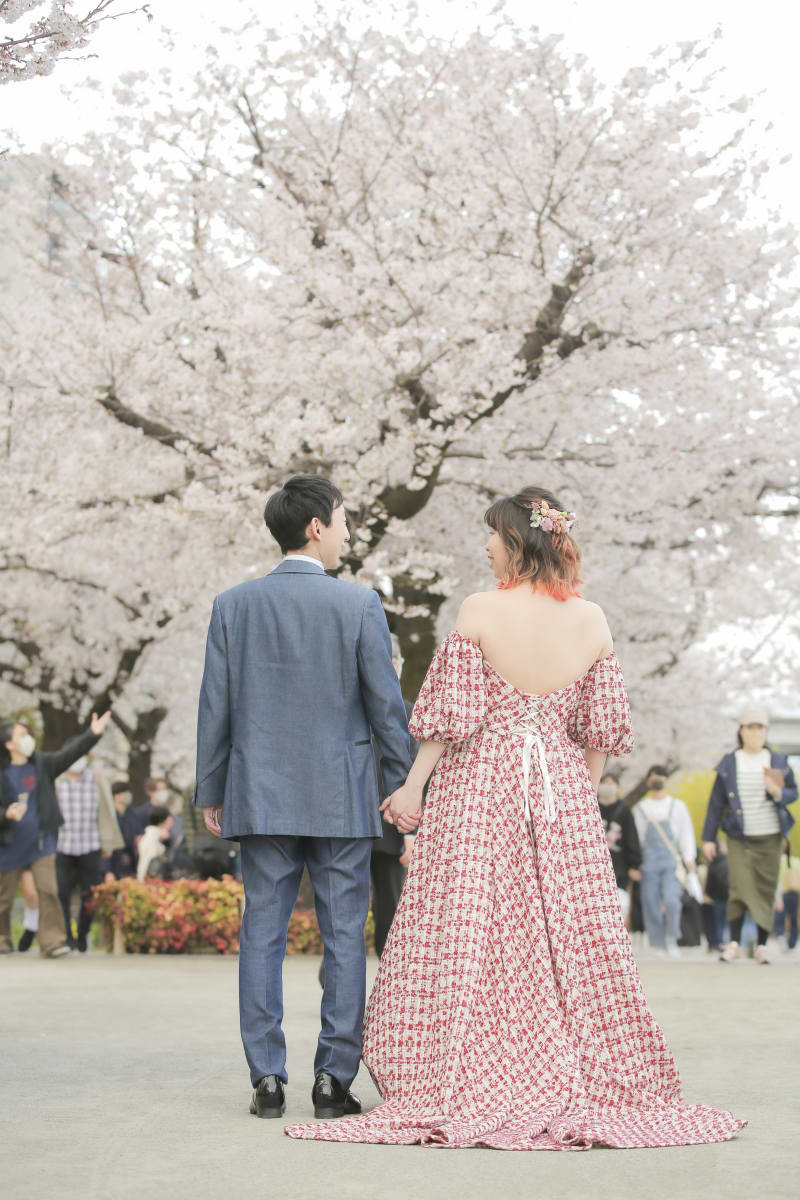ローケーション撮影でも華やかで風景に負けない素敵なお写真が撮影できます! 浅草店では現在新作のカラードレスの試着会を行なっております。 ピンクのカラードレスの他にもテラコッタカラーのドレスなど多数取り揃えておりますので この機会に是非皆様のご来店をお待ちしております!