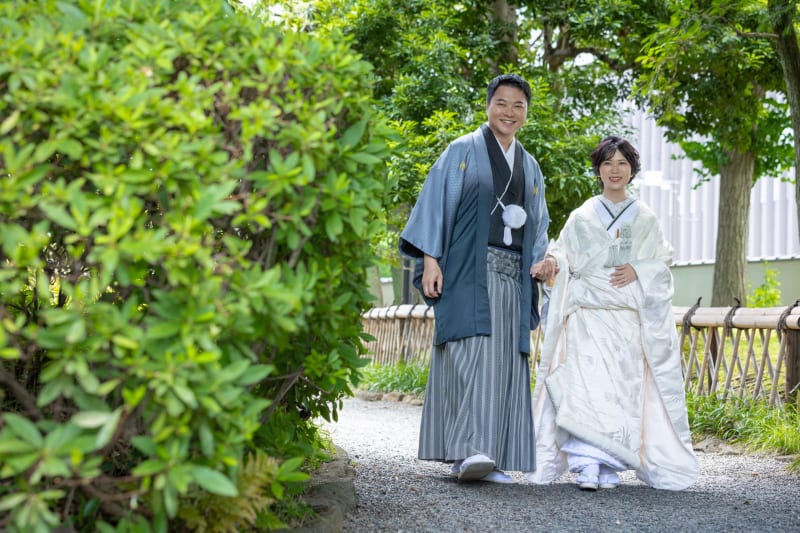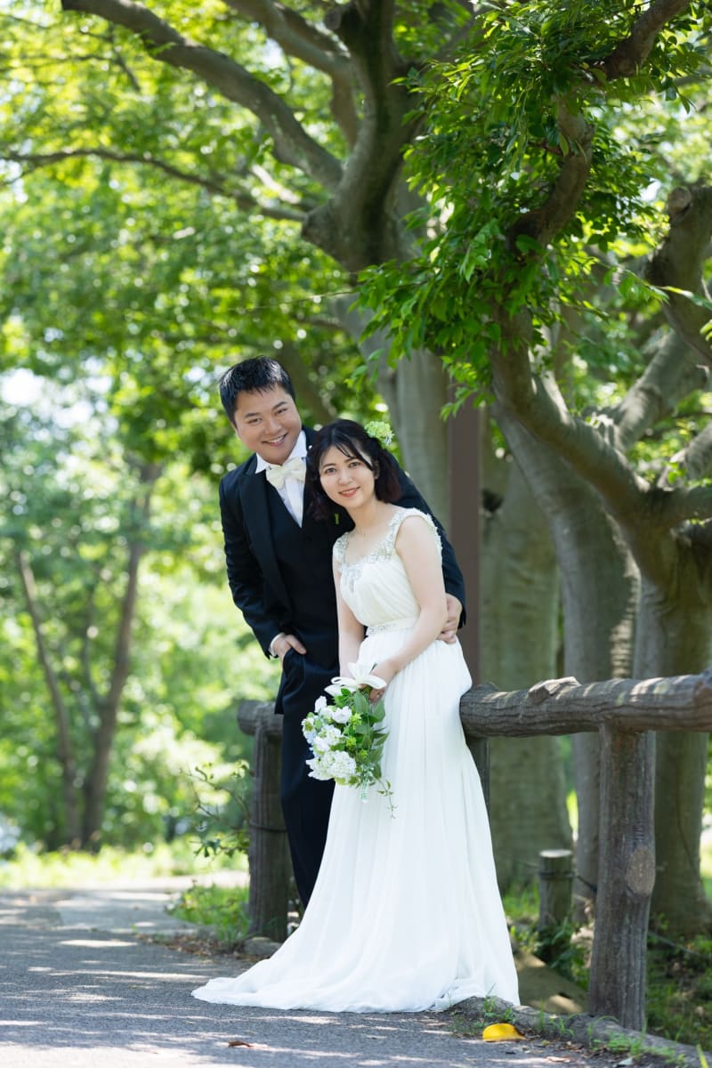 本日は旧安田庭園と水元公園でそれぞれ和装と洋装撮影されたお二人のご紹介です。