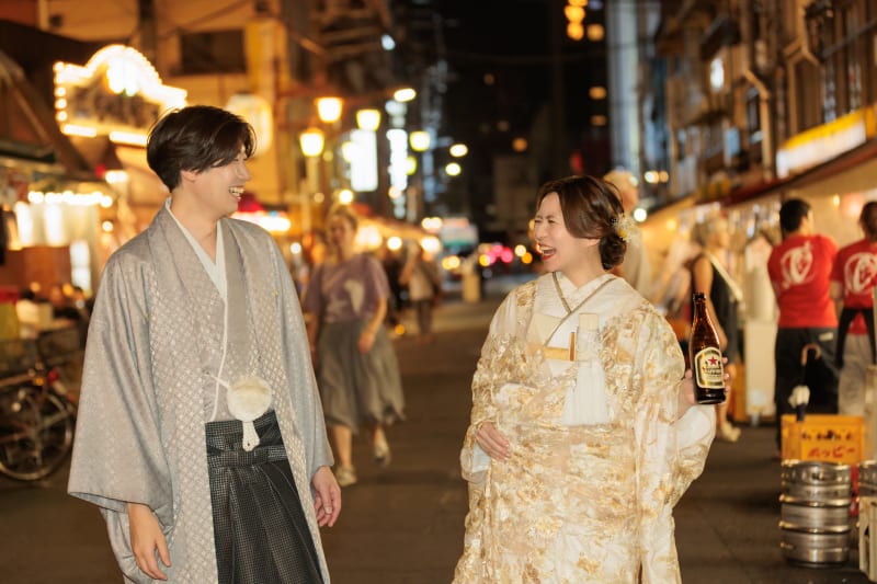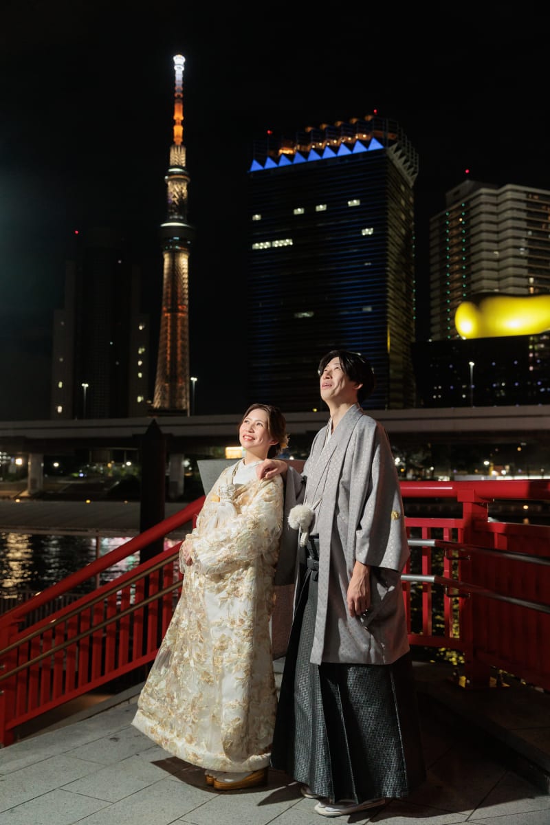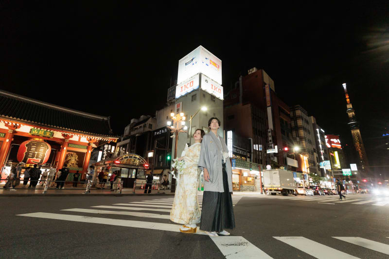 こんにちは!スタジオアクア浅草店です!今回は浅草周遊夜景ロケーションプランのお二人をご紹介します!思い出の地での撮影、さらに美味しいビールで乾杯。気分も上がりますよね!居酒屋を2件ハシゴしたお二人、笑顔と乾杯と、幸せが溢れた写真をぜひご覧ください!