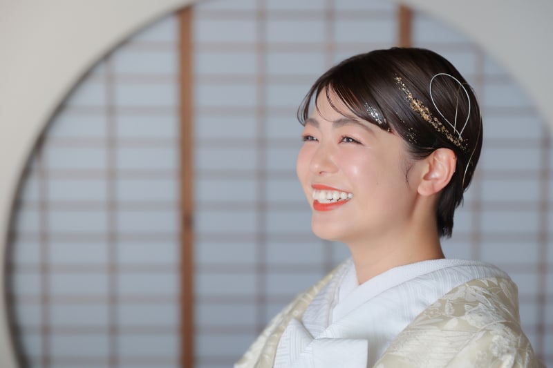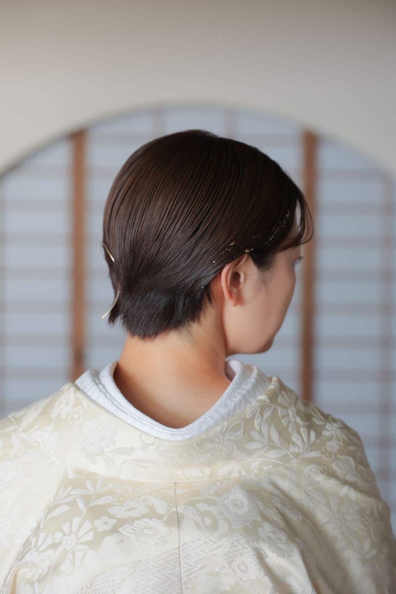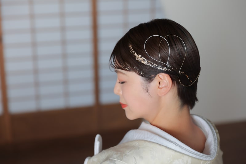 金箔、水引を使って白無垢にピッタリなスタイルに!