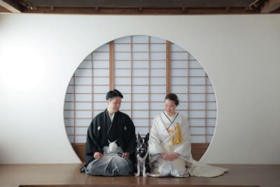雨の日も安心の屋内スタジオで、正座ショットや後ろ姿など、