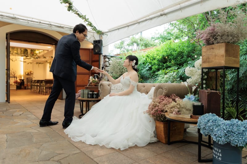 こちらのチャペルは都内では珍しくお外のガーデンでの撮影も叶えられるチャペルなんです!