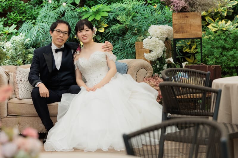 ガーデン内にはソファがドライフラワーで囲まれたエリアも。