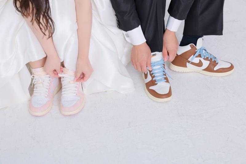 シンプルな白背景からお花に囲まれたセットまであるので、カジュアルにも華やかにも仕上げられます。