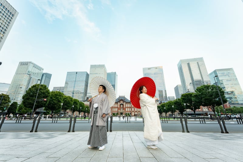 東京駅や東京タワーというと洋装のイメージを思い浮かべがちですが、和装でも撮影できるんです^^