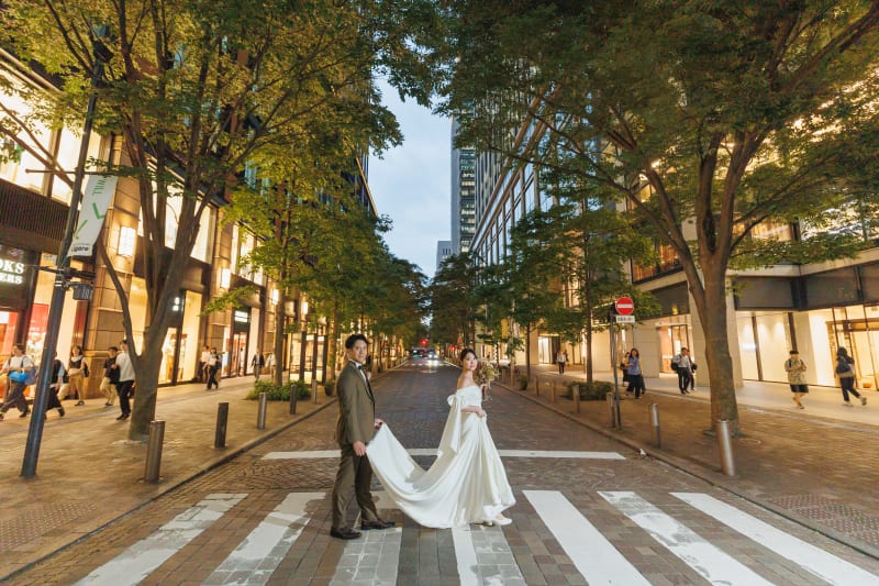 丸の内の通り、信号を渡るお二人が可愛すぎる!