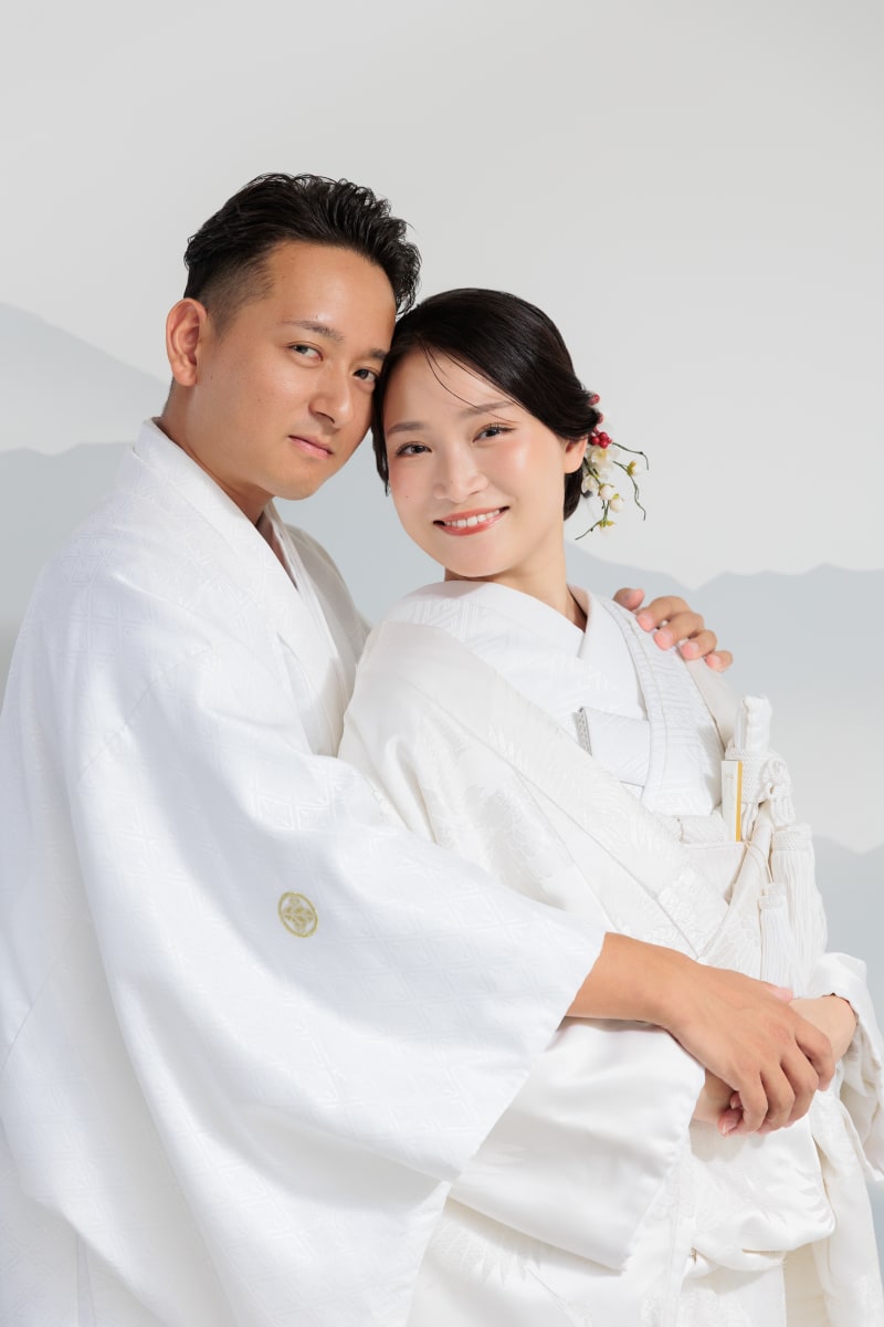新郎様も白の紋服を合わせてコーディネート⭐︎とても素敵な組み合わせでした〜
