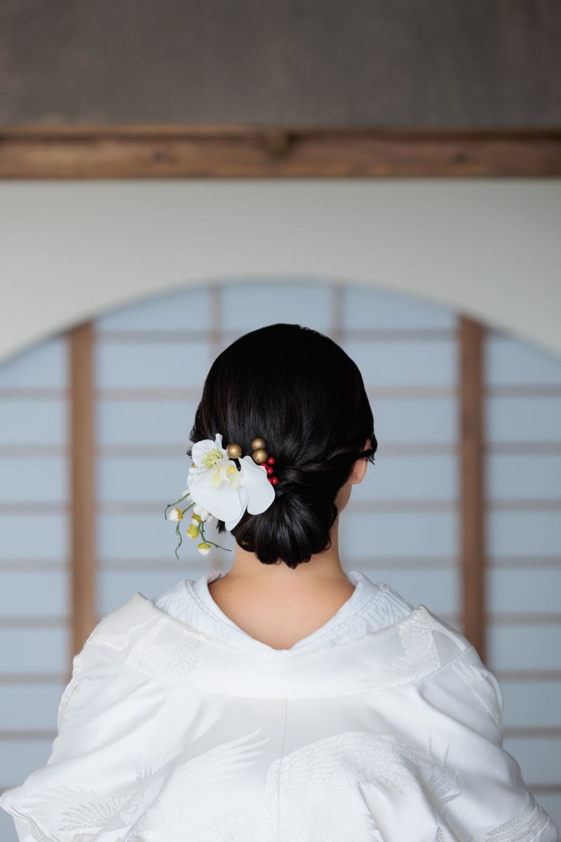 ヘアスタイルは和装で1番ご希望いただく、下めシニヨンスタイル