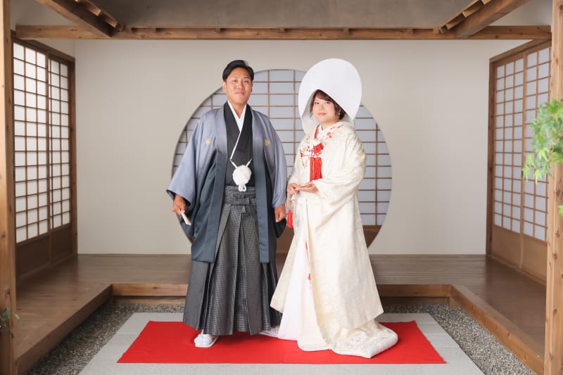 ご新婦様は白無垢に綿帽子をオプションでつけています!