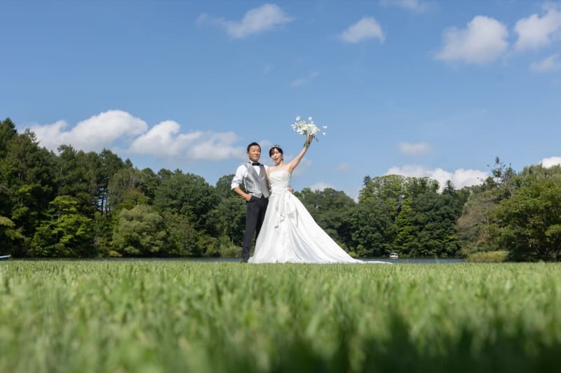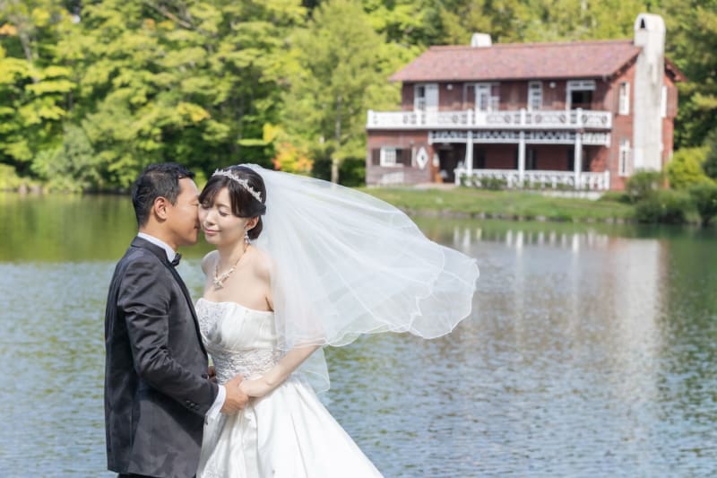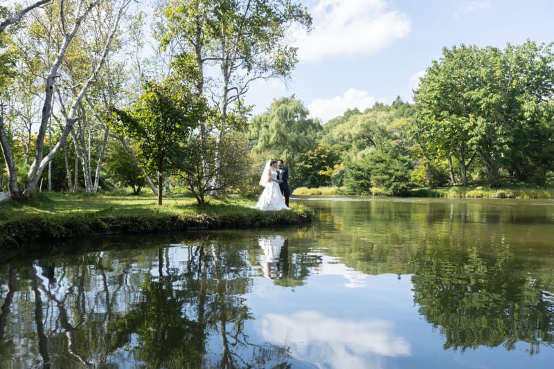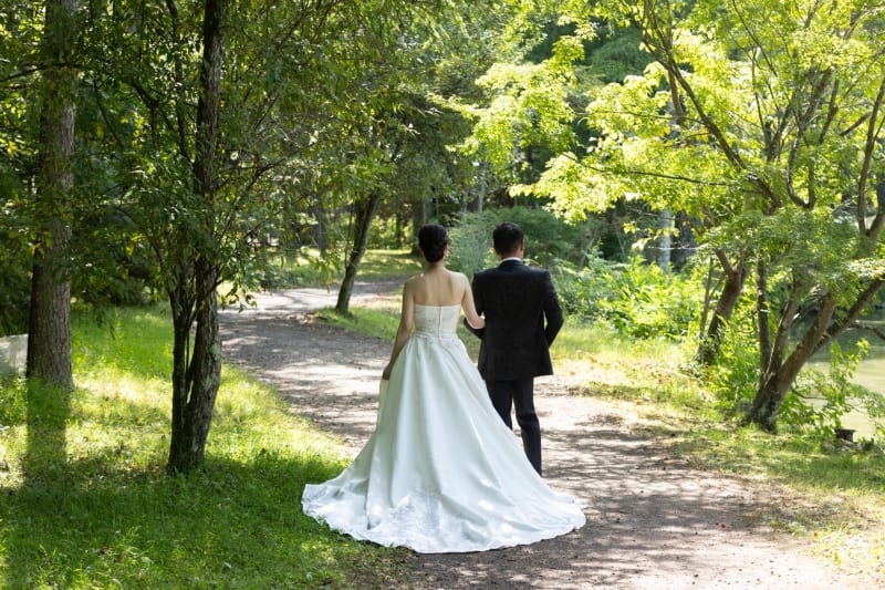本格日本庭園を再現したスタジオで撮る 和装の結婚写真
