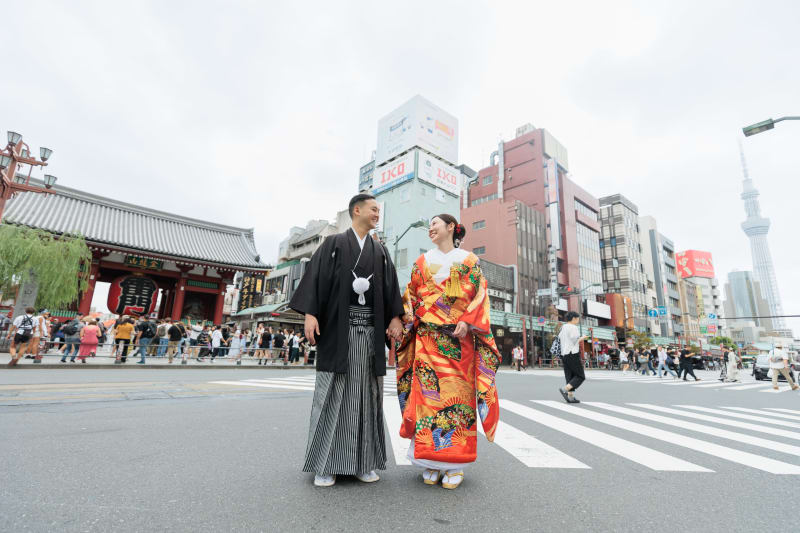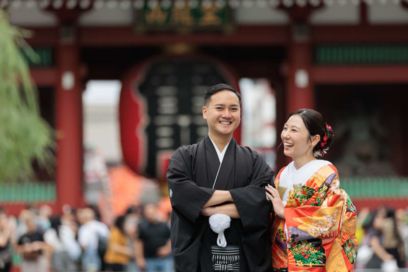 浅草といえば!というランドマークの雷門は、和装との撮影相性が抜群です!