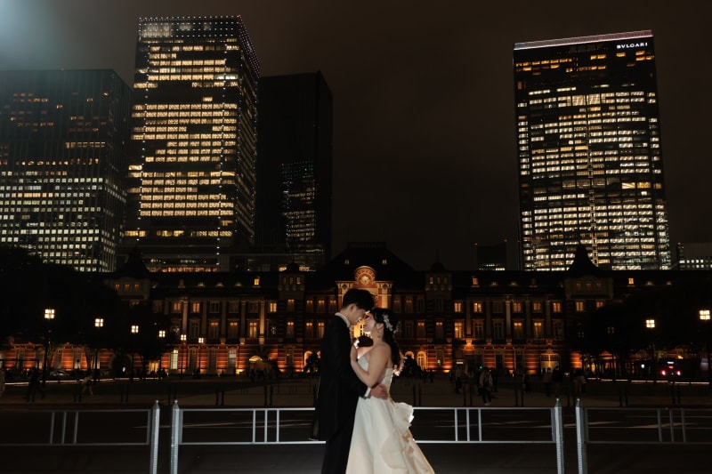 東京駅の丸の内駅舎からすぐのこの場所で、街明かりに見守られながら撮影を楽しめちゃいます!