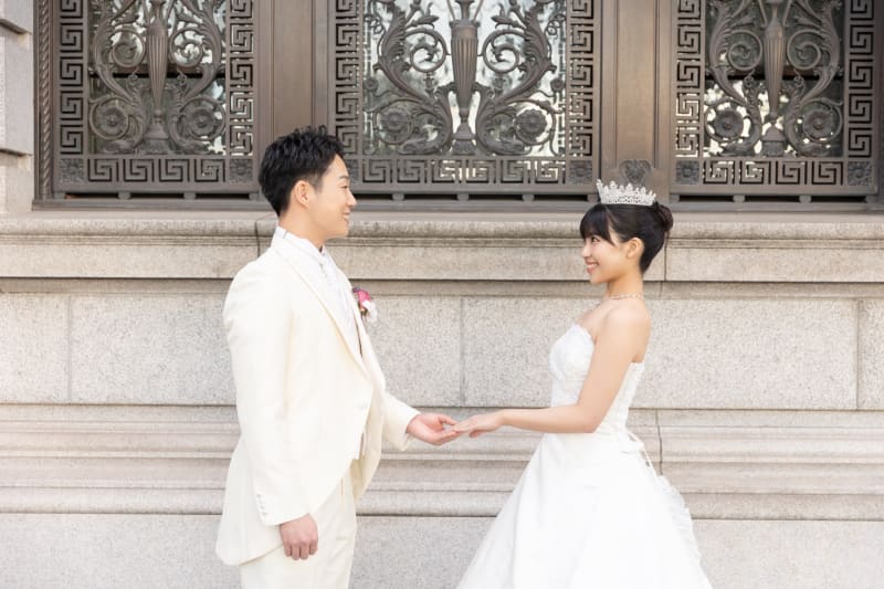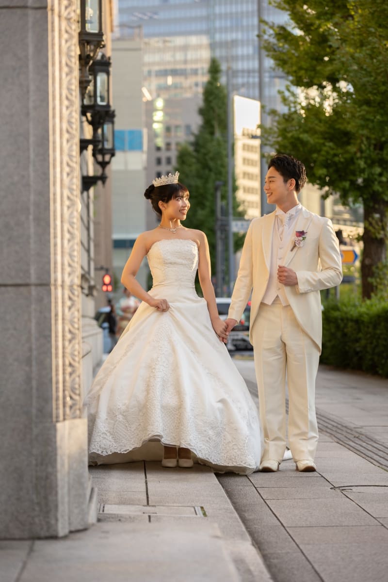 こんにちは!スタジオAQUA浅草店カメラマンのインでございます。本日は東京駅周辺で撮影したお二人のご紹介です。