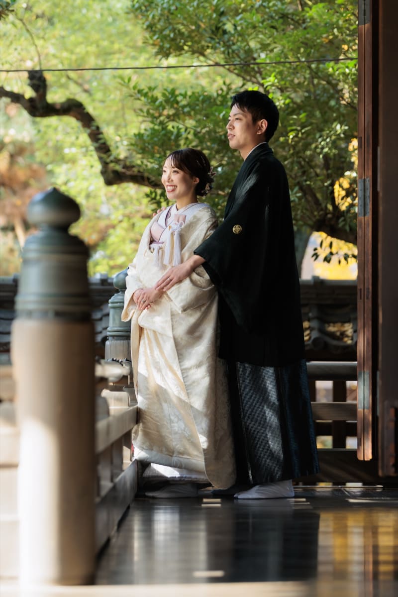 指輪交換や玉串奉奠など、式の流れが終われば境内での撮影時間!