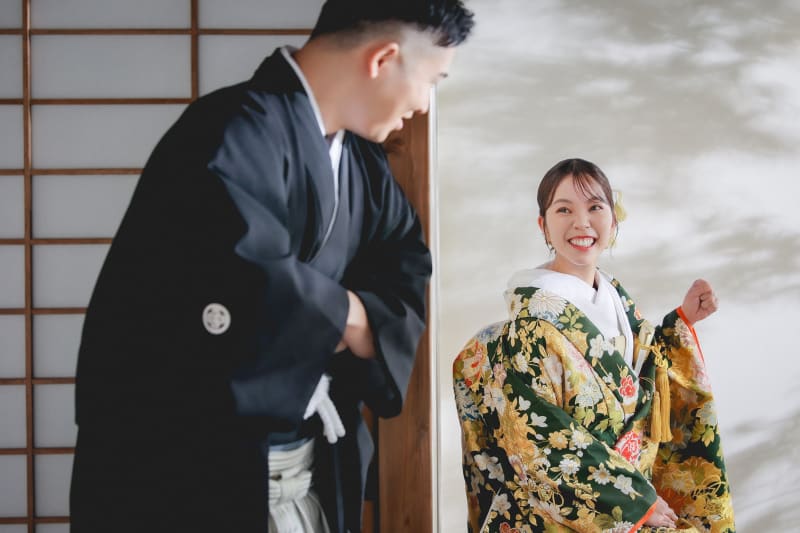 紋付袴からタキシードに衣装チェンジすることで雰囲気もガラリ変わりますね